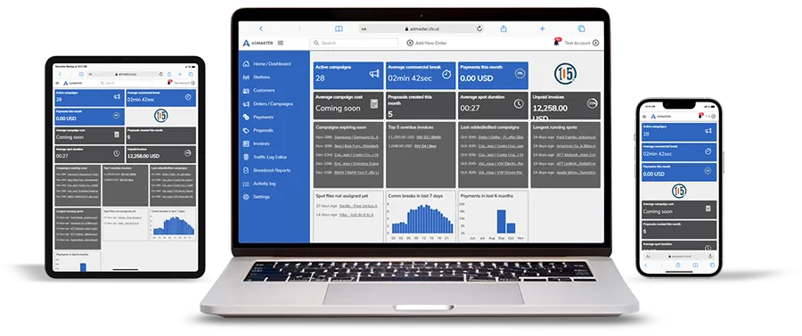 AdMaster can be used with any broadcast automation and can run on any browser-based device, with a lightweight Windows desktop client application that downloads the traffic logs and spots to your playout PC. Quick and easy multi-station scheduling means you can run a campaign on one station or simultaneously on multiple stations, with AdMaster keeping the commercial breaks durations under control. The Traffic log editor allows you to fine-tune your schedule and the detailed Stats and Reports keep track of all your activity. Plus, enjoy the benefits of live broadcast log reconciliation with email alerts, and the private report pages generated for your advertisers, to allow them to track their campaign insights in real time.